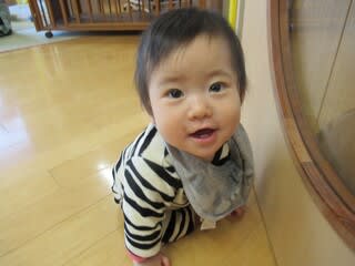 少し動きが活発になってきたお友達は保育室を自由に動き回り、お気に入りの位置へ…(*^^*)