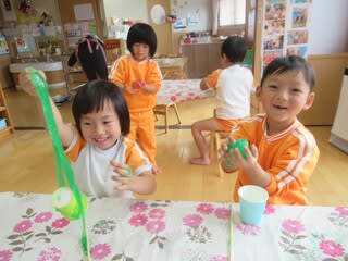 お遊戯会を頑張ったご褒美に…スライムを作ってみました