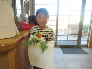 この日は、飾り餅を用意しました。支援センター利用の小学生も