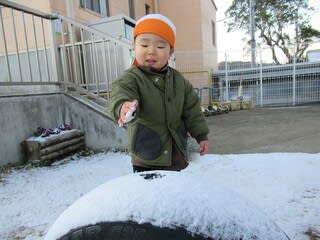 夜中は深々と降り積もり、温かい地域だと思っていた保育園の園庭も、うっすらと雪化粧。