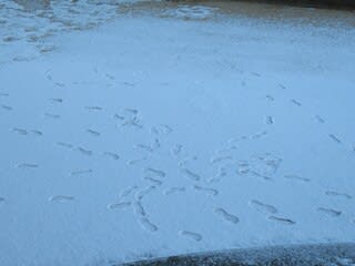 真っ白い園庭の上には、さっそく足跡が♡