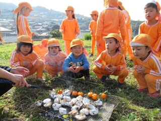 バス遠足の翌日は・・・天候回復 昨日はあんなに雨が降ったのに・・・ と落ち込んではいませんでしたが、晴れたのならば・・・と3・4・5歳児と交流の2歳児揃ってお散歩に出かけていきました。 園庭からは0・1歳児…