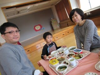 製作が終わると、お母さんお父さんも一緒に給食です☆