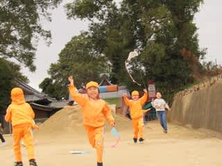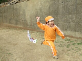 「先生~見て」と走ってきたお友だちが空高く上がった凧を嬉しそうに見せてくれましたよ