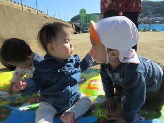 0歳児さんたちは、あっちへ行ったり、こっちへ行ったりと見るもの全てに興味をもっては触ってます