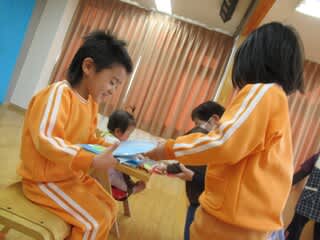 ある日の朝、「おはよう!」 と2歳児のお部屋をのぞくと・・・ おやつ前の準備だったようです。 上手に椅子に座ってますね 遊ぶときは思いっきり! でも、やるときはやります! 朝の準備では、お便り帳・出席ノート・エプロンを出…
