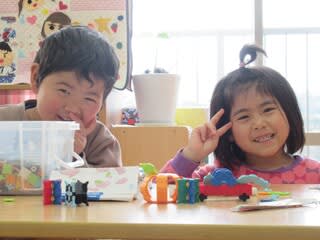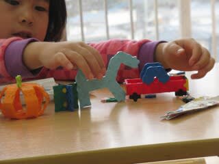 お部屋に入ると、ブロックやラキューといったおもちゃを使って、集中集中!!