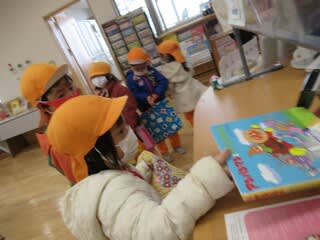 今日は天気が良かったので3、4、5歳児さんは、あけぼの公園までお散歩に出掛けました 交流に来ていた2歳児さんも一緒に出発です 太陽も出ていて、寒いどころか暖かいほど 女の子2人を従えて、ニコニコです シーソーは満員の6人…