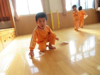 そして、カルタに挑戦です。好きな食べ物は○○。嫌いな食べ物は○○。など見つけて持ったら先生の所へ・・・
