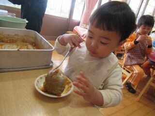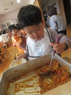 この日は、1歳児から5歳児まで一緒に食事♪