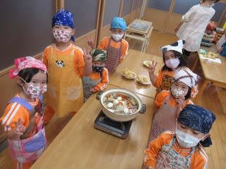 「やった~おもち♡」とはみ出ないようにつまようじをしたり、猫の手で具材を切ったり、この一年間でたくさんのことを経験できたクッキングとなりました。