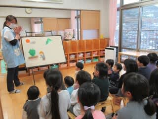 お迎えが来るまでの間、この日はペープサートが行われていました