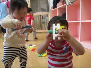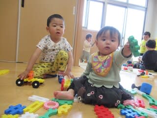 はい、どうぞ♡と言わんばかりに、ブロックを差し出してくれた0歳児さん(^^♪