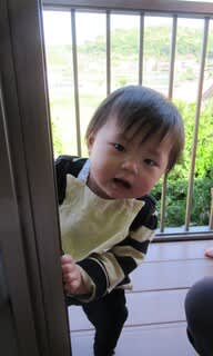 「ばぁ」とにっこり笑顔。いないないばぁもとても上手になりましたね♪