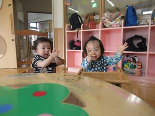 保育士の手遊び歌に、にこにこ笑顔で応えてくれました♡