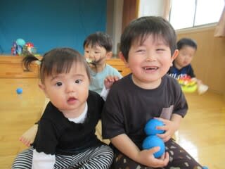 久しぶりに天気がよかったこの日 0~5歳児さんまでみーんな一緒にお外で遊びました(#^.^#) 0,1歳児さんたちと遊ぶのは久しぶり♪ 体が小さいので、お外に出る時間も上のクラスの子ども達に比べると短いのです…。 「まて…