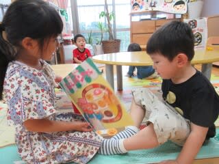 年上のお友達が絵本を読んでくれていました。
