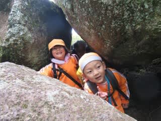 テンポよく登っていくと、頂上付近に大きな石のトンネルが見えてきました!