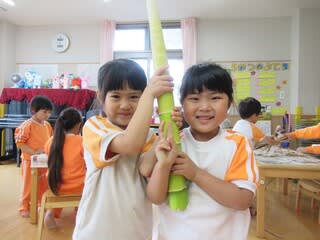 子どもたちは、皮のついた破竹を見るなり、「ごぼうだ~!」と大喜び(^^♪