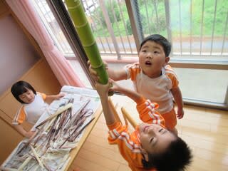 「あれ?これって竹?」と呟き、こんななってるよね~と高く立てている姿がありました