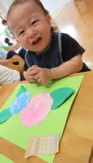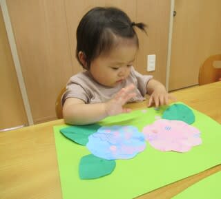 0・1歳児さんは、個性あふれる紫陽花を作りました♪