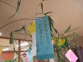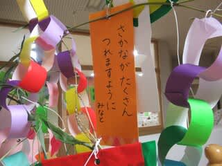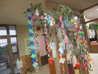 保育園の玄関には七夕飾りがあります。子どもたちの願い事の短冊もあります。