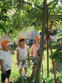 カブトムシとのお別れをしました。園庭にある木々に放ち、あとは巣立つのみです。