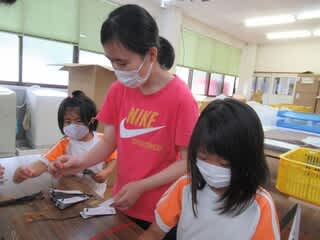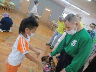 「どうやってするんですか?」元気よく質問する子どもたちに優しく教えてくださる利用者さん。