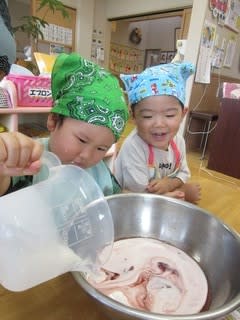 今日は、2歳児さんのクッキングの様子をお伝えします。