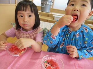 「つめたーい」「いつものより甘いね」など気づいたことを話し、美味しく頂きました