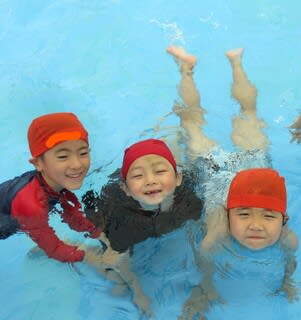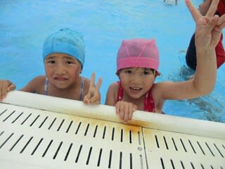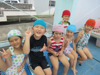 先日、3.4.5歳児では、大きなプールへ行ってきました♪
