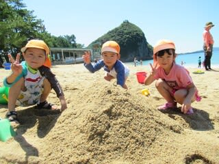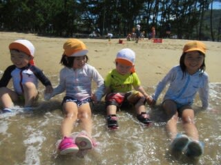 ダイナミックに海へ入る子、砂遊びを満喫する子、それぞれ好きな場所で楽しみました。