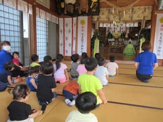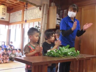子どもたちは八幡神社にて神事に参加しました。