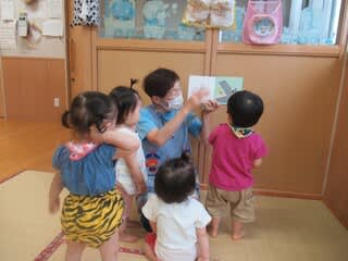 言葉こそまだないものの、保育士に続くようにそれぞれが発語し絵本を楽しみました