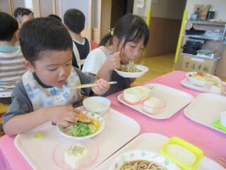 「お皿を持つんだよ」「箸置きにおいてね」など優しく教えてくれるお兄さんお姉さん