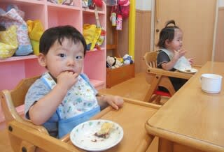お昼寝のあとは、身支度をして「おやつの時間」です。