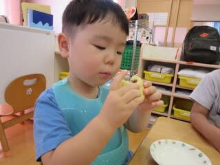 この日のおやつの、”じゃがいも饅頭”をパクっ。