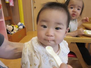 月齢が進み、食べれる物が増えていく0歳児さん。