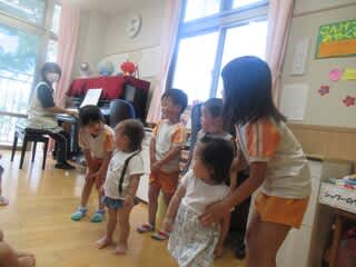 お当番さんが前へ出る時は、お兄さんやお姉さんが0歳児さんと手を繋いだりするような思わずホッコリする一面も見せてくれます