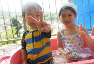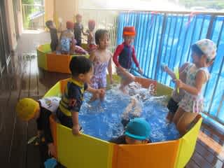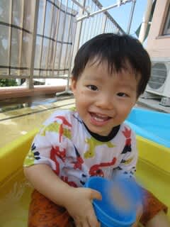 保育園での水遊びが初めてだったお友達も、すっかりと慣れ
