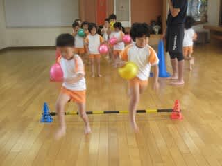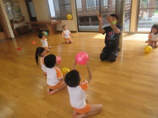 この日の体育教室は、ボールを使った運動でした。