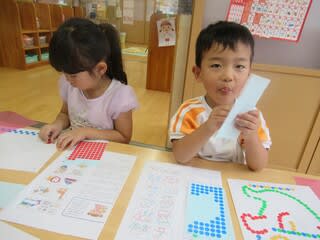 お手本とにらめっこしながら、同じ色になるように、はみ出さないように気をつけながら取り組みました
