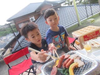 そして、夕食はバーベキュー。自分たちで炊いたご飯やお肉はとても美味しくお腹いっぱい頂きました。
