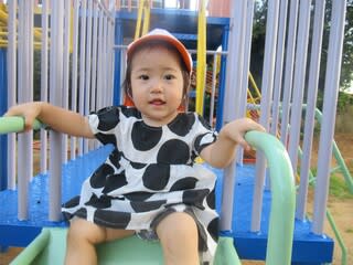 今日はみどりの日。 保育園の門にも日の丸を掲げてます。 室内で遊んだ後は・・・ 園庭へレッツゴー 勢いよく行きたかったのですが、ポポちゃん(人形)にも靴を履かせようとしてくれる彼。 上手くできるかな? よし!できた~!ヽ…