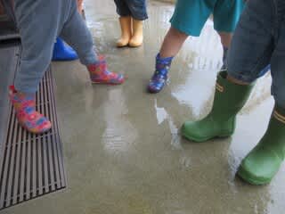 いつも履いている靴では入れない、水たまりもこの日は特別。