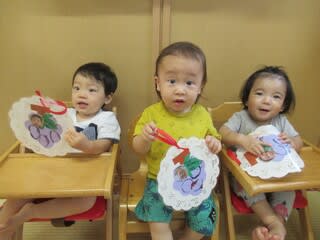 0.1歳児さんはありがとうの気持ちを込めて、ぶどうのプレゼント