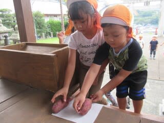掘ってきたお芋は神様へお供え。大きく育ててくれてありがとうと感謝の気持ちも伝えることができました(^^♪