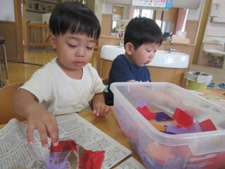 2歳児さんは、さつまいもの製作に取り組みました。
