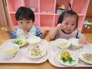 今回は、特別にプレートに入れてもらって、いつもと場所も変えて喫茶気分 「おいしいね~」「オクラだ~」とお話も弾ませながらの食事となりました いつもとちょっとだけ違うと、ワクワクな時間となりますね
