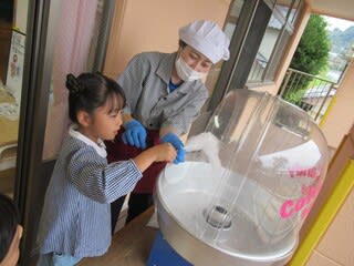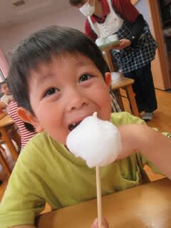 おかわり分に小さめの綿菓子作りに、挑戦した子どもたちでした。